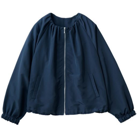 ラグランスリーブで肩まわりにゆとりを持たせ、動きやすくゆったりとした着心地に仕上げました。衿、裾、袖口に施されたギャザーがふんわりと丸みのあるシルエットを作り、思わずときめく可愛らしさを演出します。裾は着こなしの変化を楽しめるドロスト付き。袖口はたくし上げやすいようにゴム仕様になっています。ショート丈ならではの、気負わずに羽織れる手軽さが魅力的。