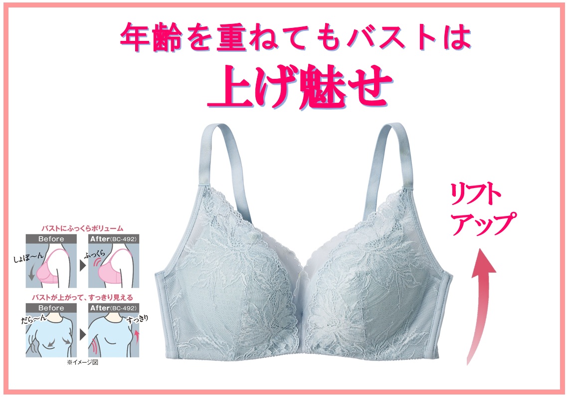 ノンワイヤーブラが主流になりつつある中で、「ノンワイヤーだとやっぱり不安」「バストラインの美しさにこだわりたい」というワイヤー派の方に、少しでもつけ心地のラクなものを提供したいという思いから開発しました。バストのポジションが変わるだけで、グッとスタイルがよく見えたり若々しく見えたりするうれしさを、より多くの人に手軽に実感していただけるブラジャーを目指しました。