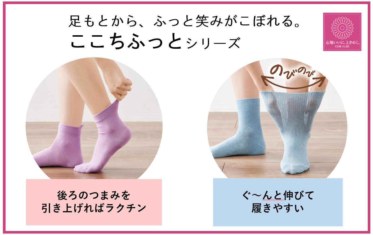 株式会社セシール(本社:東京都新宿区)は、『ここち履きつまみソックス・色違い2足組』、『ここち伸びソックス・色違い2足組』を2月27日より販売開始しました。セシールのリブランディングと絡めて、心地よく履ける靴下ってどんな靴下?というところを見つめ直し、かがみにくい方や妊娠中の方も片手でも履ける・ぐ~んと伸びて履きやすいソックスを企画しました。ぜひお試しください。
