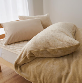 直接肌に触れる面には「スマートヒート®」を使用。体から出る水分を吸収し、暖かさへと変換します。表面は軽くてあたたかなフリース素材で、頬ずりしたくなるようなやさしい肌ざわり。8か所のホック付きズレ防止テープでしっかり固定してくれるので、布団とカバーがズレることなく快適な睡眠をサポートします。