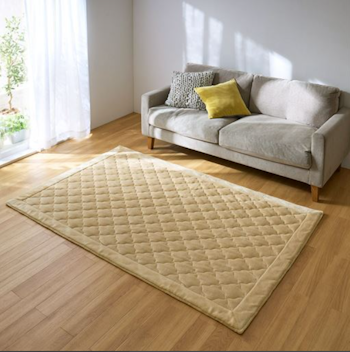熱を逃がさない蓄熱わた、床つき感を抑える固わた、下からの冷気を遮るアルミ蒸着不織布、裏面はすべりにくい加工の不織布と、あったか5層構造で床からの冷気を徹底的にブロックします。フローリングの冷たさを感じさせず、素足でも快適に過ごせます。